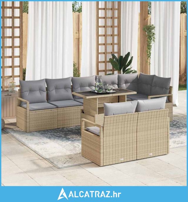 9 komadni set vrtnog namještaja s jastučićima bež poli ratan - NOVO