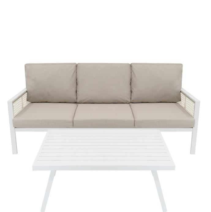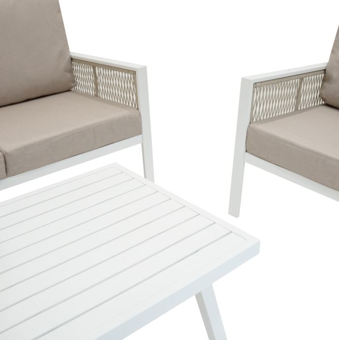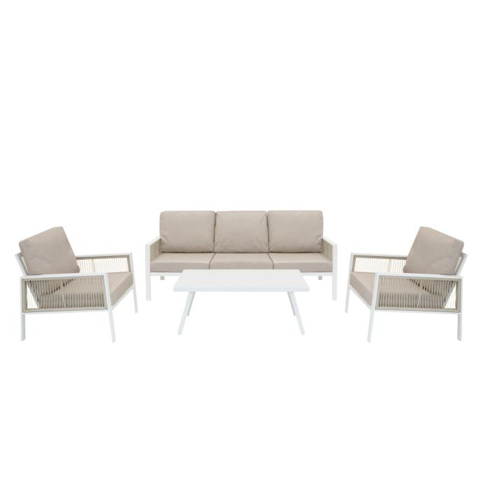 Idealan za one koji vole zabavljati ili jednostavno uživati u mirnom utočištu na otvorenom, aluminijski set sofa od 4 dijela u bijeloj boji nezaobilazan je za svaki vrt ili terasu.