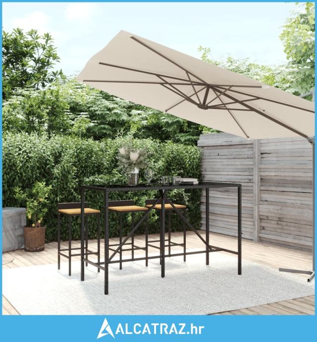 Barski stol sa staklenom pločom crni 180x70x110 cm poliratan - NOVO