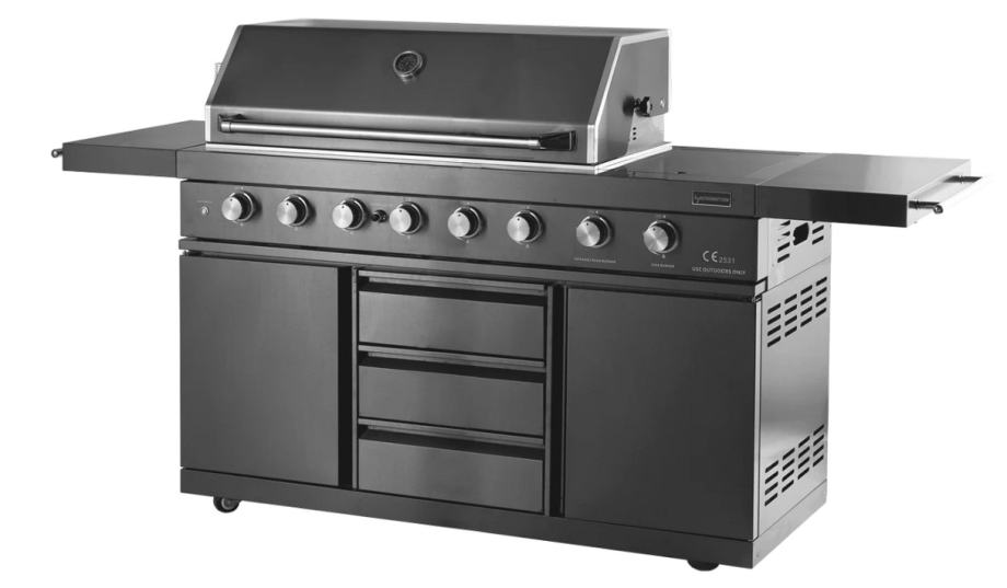 4 kotača omogućuju vam da roštilj lako premjestite gdje god želite i zaključate ga. Izvrstan prostor za pohranu s 3 velike ladice i 2 ormarića s dovoljno prostora za kuhinjsku opremu, pribor i plinsku bocu. Iza vrata ormarića pronaći ćete i praktične detalje poput držača za papirnate ručnike i kuka za vješanje alata za roštilj, rukavica za pećnicu, ručnika i još mnogo toga. Ovaj roštilj bit će srce ekskluzivnog vanjskog kuhinjskog prostora vašeg doma!