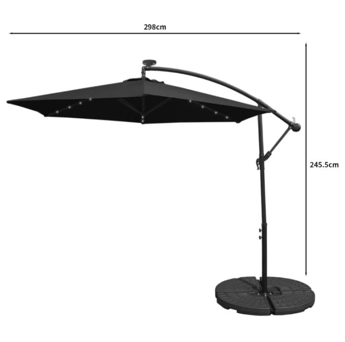 Prekrasan crni konzolni suncobran s 24 LED diode