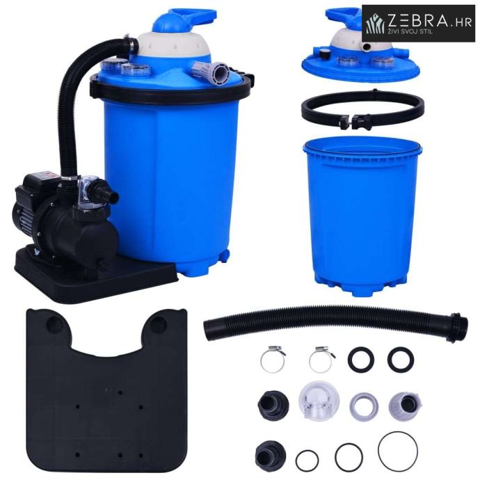 Potrebno je 25 kg pijeska ili 700 g filtarskih kuglica (nije uključeno)