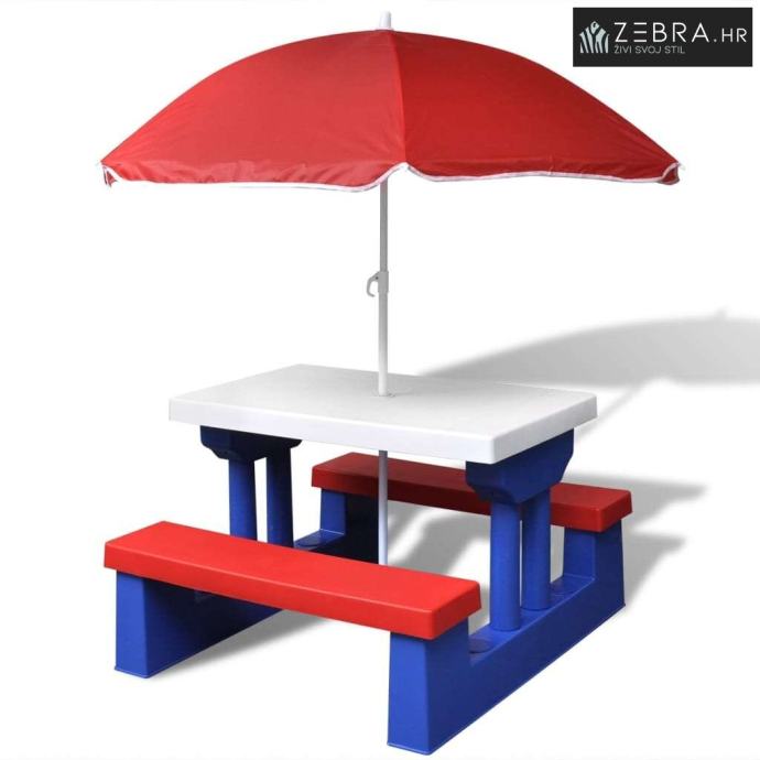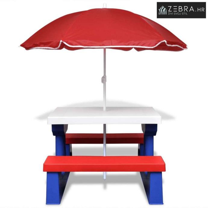 Sjedeći za ovim stolom, vaša će se djeca lijepo provesti s prijateljima u vrtu. Isporuka uključuje suncobran.