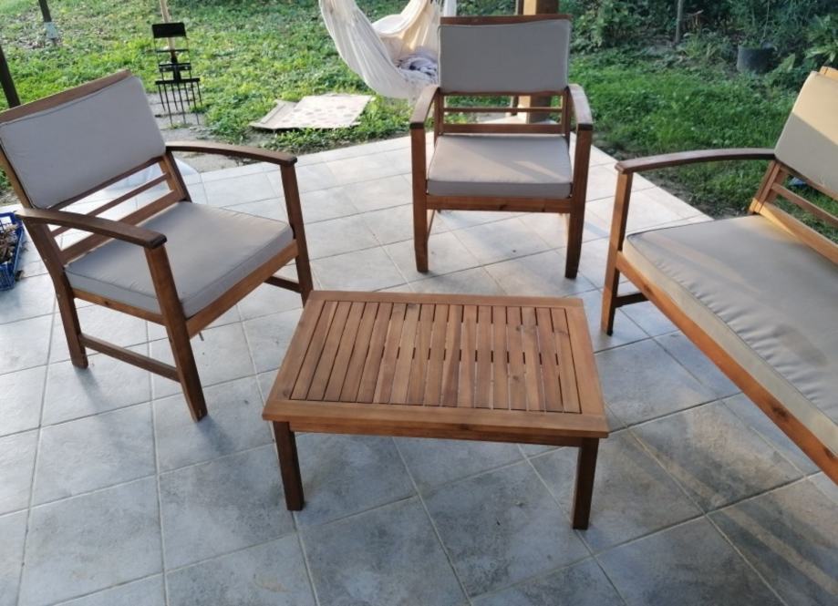 Prodajem drvenu garnituru za sjedenje, dvosjed dvije fotelje i stolić. Jako očuvano.