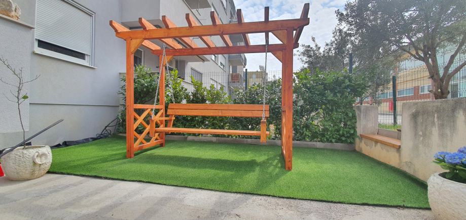 Dodajte posebnu zonu odmora svom vrtu uz našu masivnu drvenu ljuljačku s pergolom, koja spaja ugodu ljuljanja s elegancijom pergole. Izrađena od konstrukcijskih greda visoke čvrstoće, ova ljuljačka pruža izuzetnu stabilnost, dugotrajnost i estetsku vrijednost.