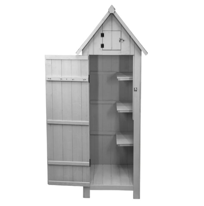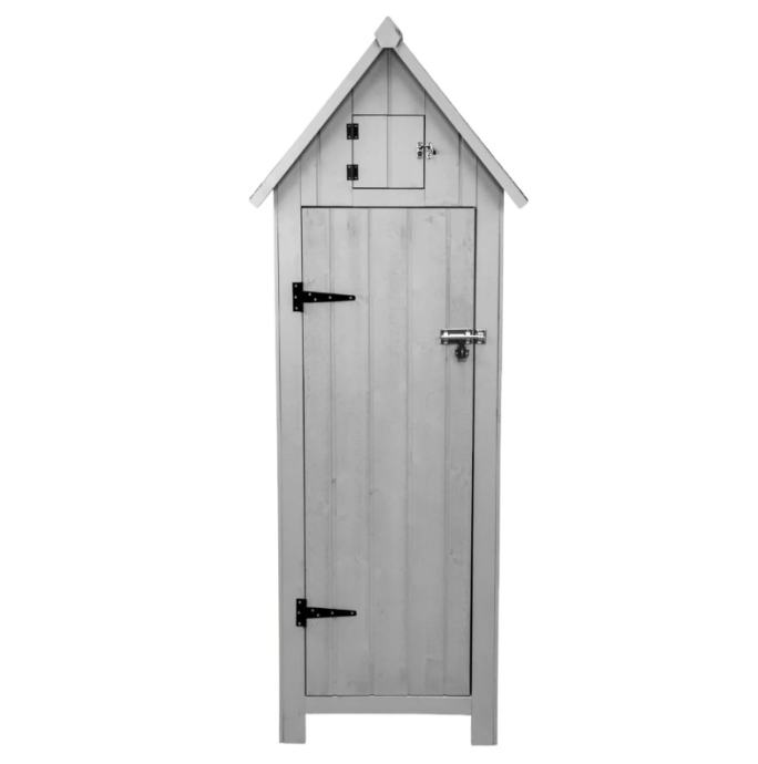 Prekrasno izrađena od visokokvalitetnog jelovog drva, ova vrtna šupa izgrađena je da izdrži vremenske uvjete i pruži dugotrajnu izdržljivost. Zahvaljujući kosom krovu i asfaltnom premazu, kišnica učinkovito otječe s šupe, osiguravajući da unutrašnjost ostane lijepa i suha. Svojim klasičnim drvenim dizajnom i elegantnom sivom bojom, koja je praktično vodootporna, ova vrtna šupa izvrsno će upotpuniti svaki vanjski prostor.