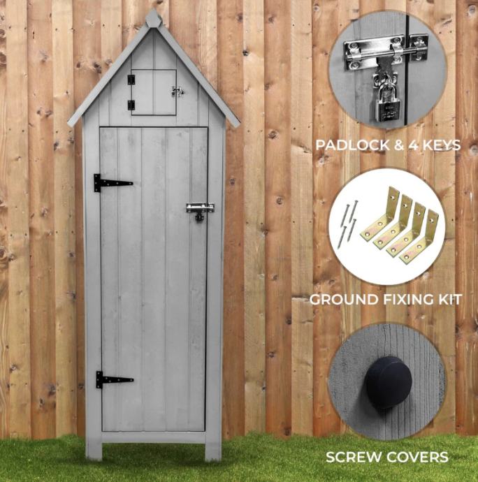 Dolazi spakirana, ova vrtna šupa s mogućnošću zaključavanja može se brzo sastaviti zahvaljujući priloženim bitnim vijcima, tako da odmah možete maksimalno iskoristiti ovu praktičnu jedinicu. Kako bi se poboljšala cjelokupna estetska privlačnost vrtne kućice, isporučuje se s modernim sivim poklopcima koji skrivaju vijke nakon sastavljanja.