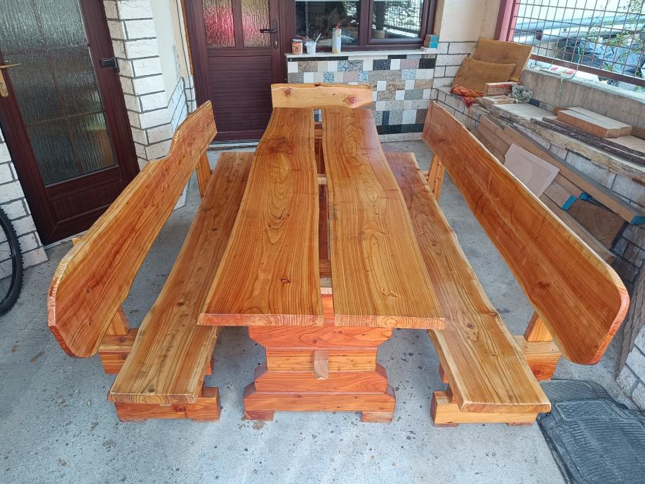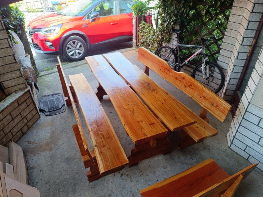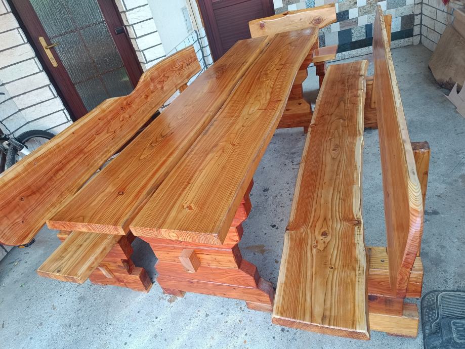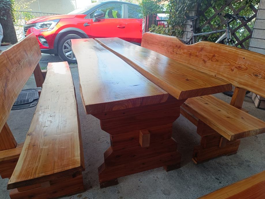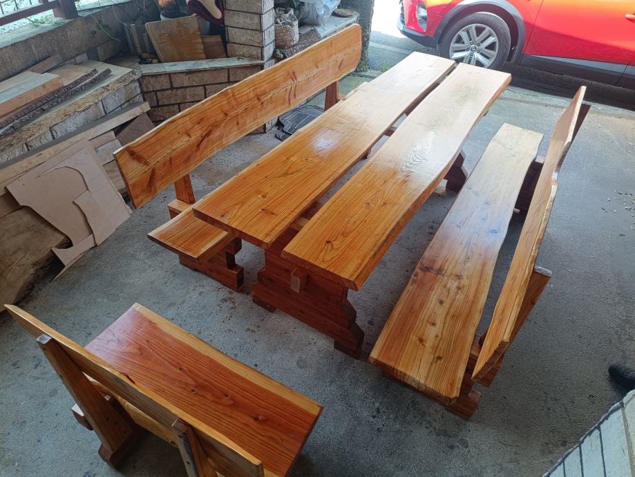 Prodajem stol i klupice sa slike od ariša, dužine 220 cm X 70 stol ,grad Zagreb . Zvati na broj 099 856 3385
