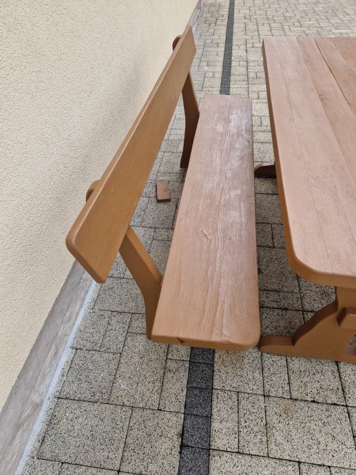 Drveni stol sa dvije klupe. Dimenzije stola 180x80. U dobrom stanju.