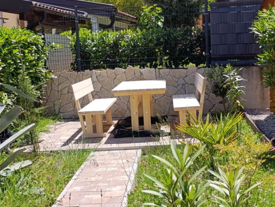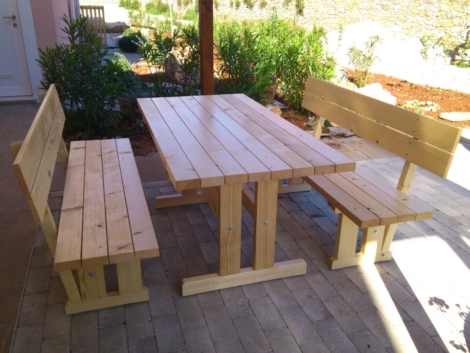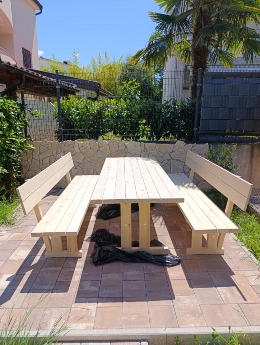 Drveni stol (200cm×80cm) i 2 klupe sa naslonima- 500,00€.