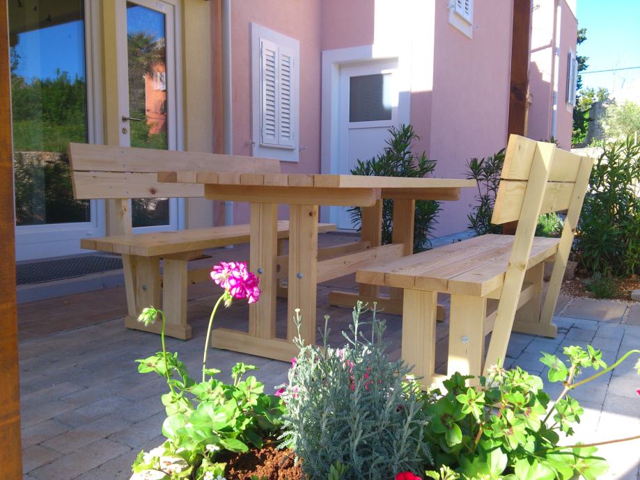 Drveni stol(200x80) i 2 klupe bez naslona - 470,00€.