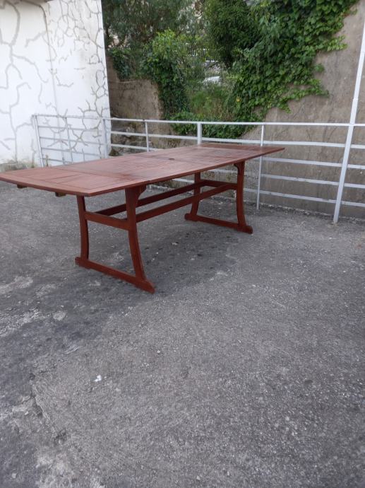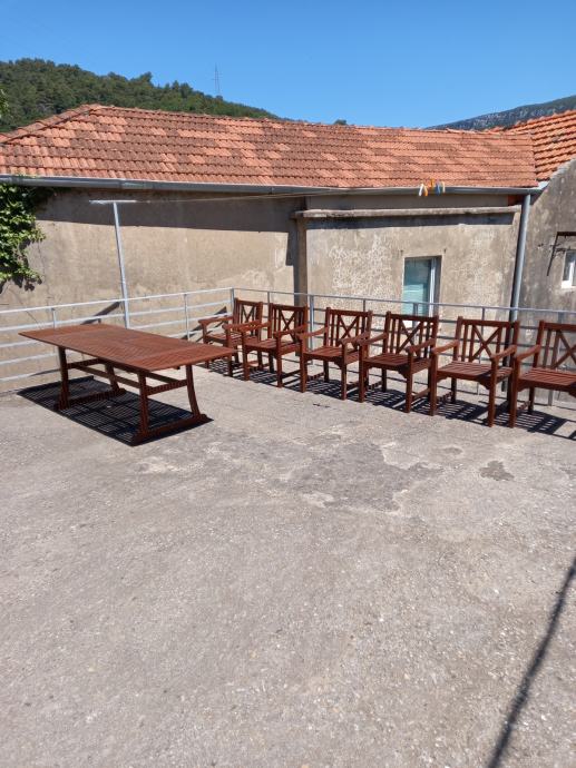Prodajem vrtni stol i stolice - skandinavski namještaj. Stol je dimenzija 240x90 cm. sa rupom za suncobran + 6 stolica, kratko korišteno, nanešen zaštitni premaz boje tikovine. Tel.: 091/2537101