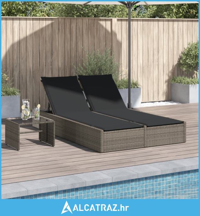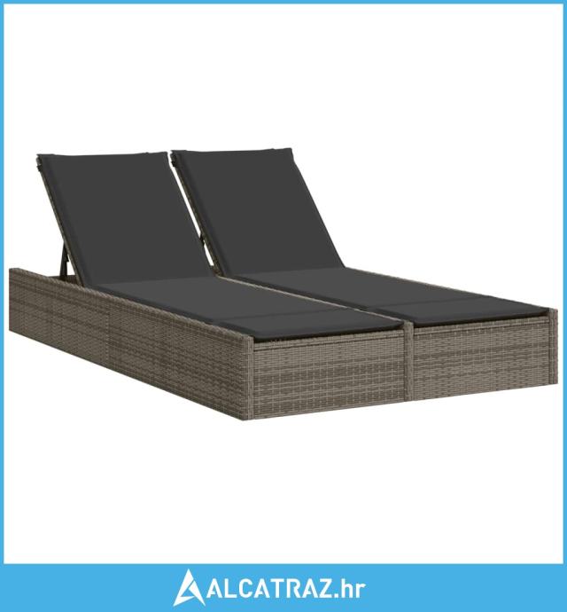 Dupla ležaljka za sunčanje s jastucima siva od poliratana - NOVO