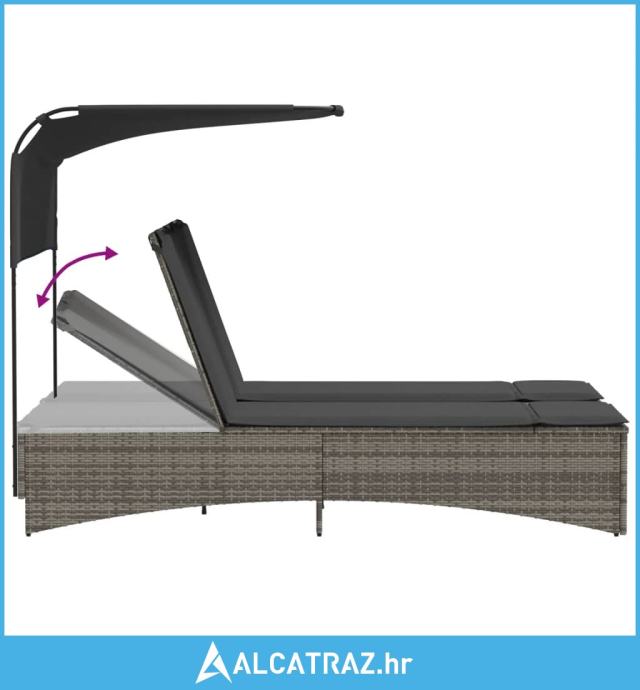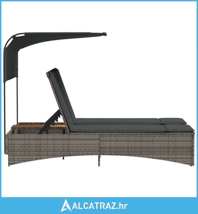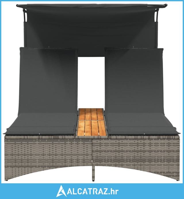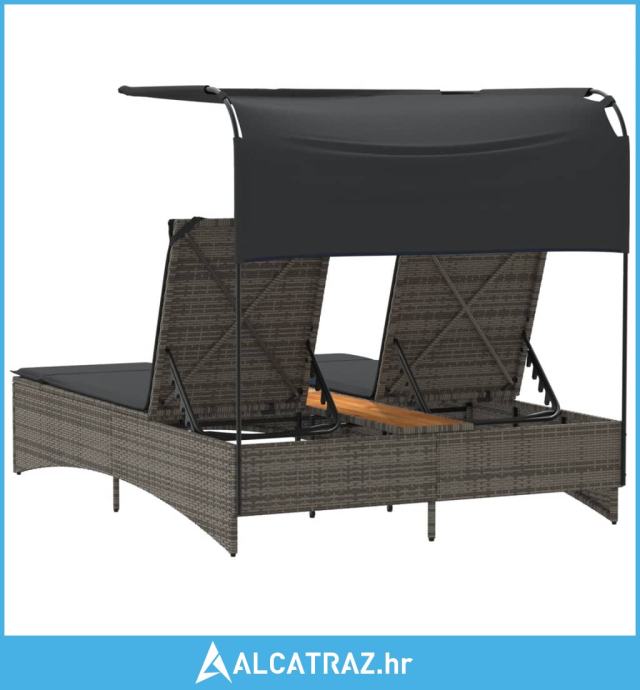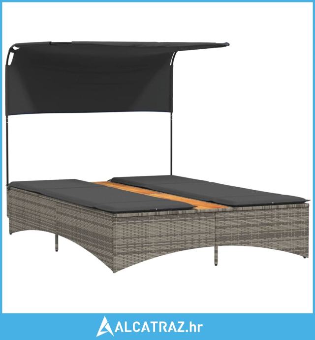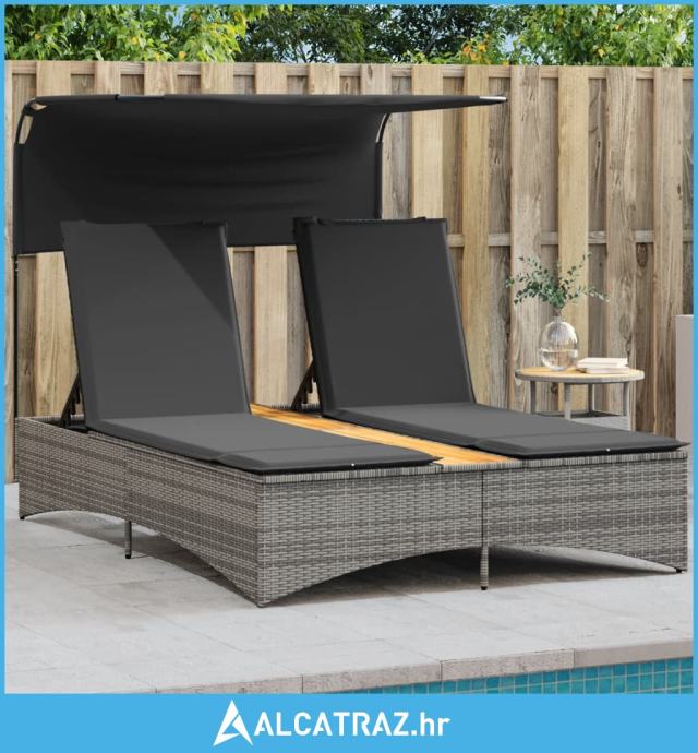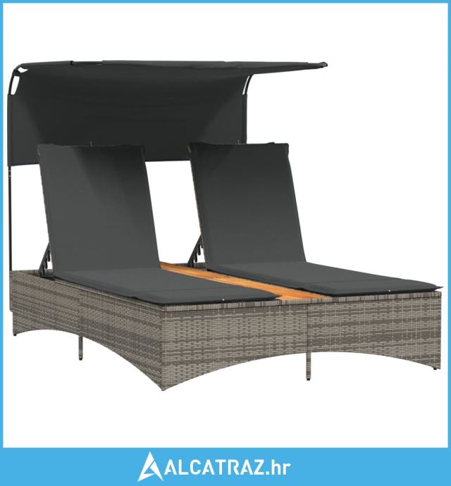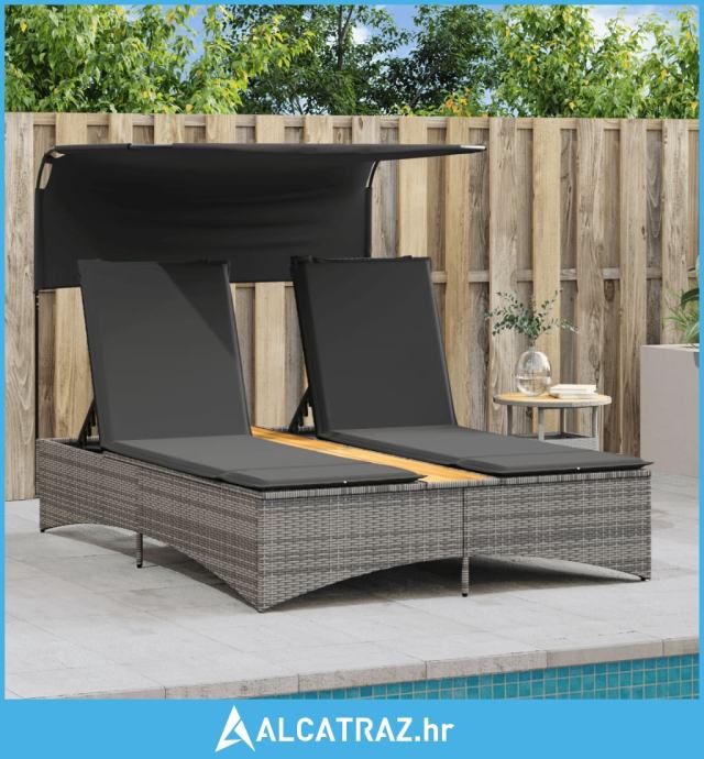 Dupla ležaljka za sunčanje s krovom i jastucima siva poliratan - NOVO