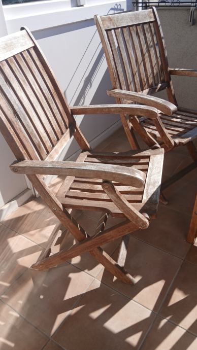 Hitno Dvije drvene stolice na rasklapanje i stolić za balkon ili vrt
