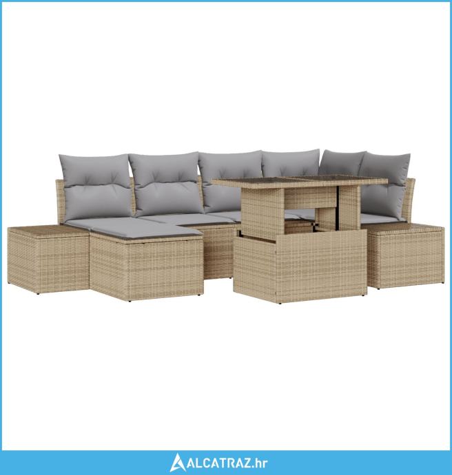 Ova 7-dijelni dvorišni kauč set s jastučićima je odličan dodatak svakom vanjskom prostoru, kombinirajući stil i funkcionalnost. Moderni dizajn s bež i sivim nijansama čini ga savršenim za opuštanje i uživanje na otvorenom.
