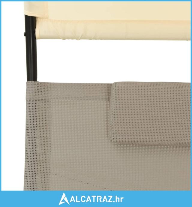 Dvostruka ležaljka s krovom od tekstilena smeđe-siva i krem - NOVO