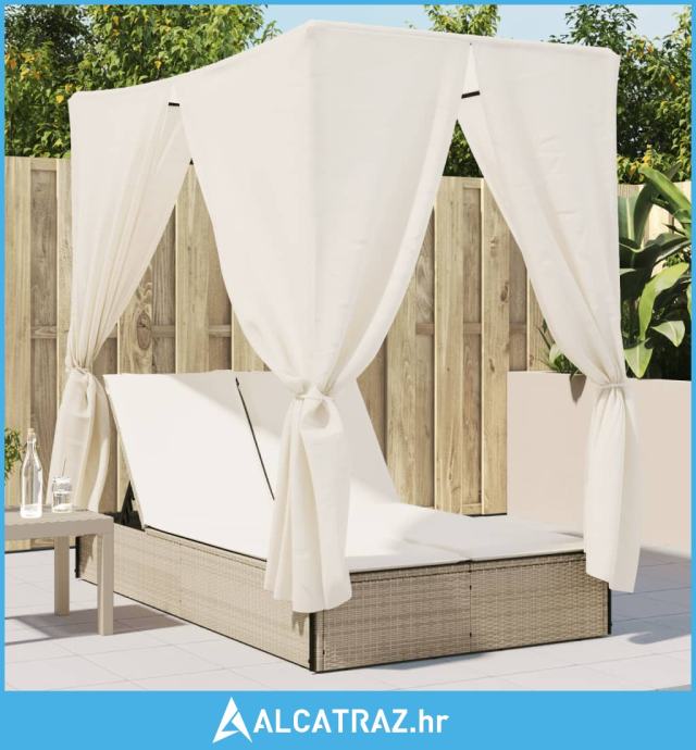 Dvostruka ležaljka s krovom i zastorima bež od poliratana - NOVO