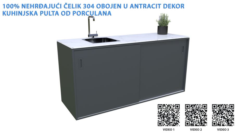 Gornji pult od porculana debljine: 15 mm, dekor talijanskog mramora i otporan na vanjske utjecaje, jednostavan za održavanje;