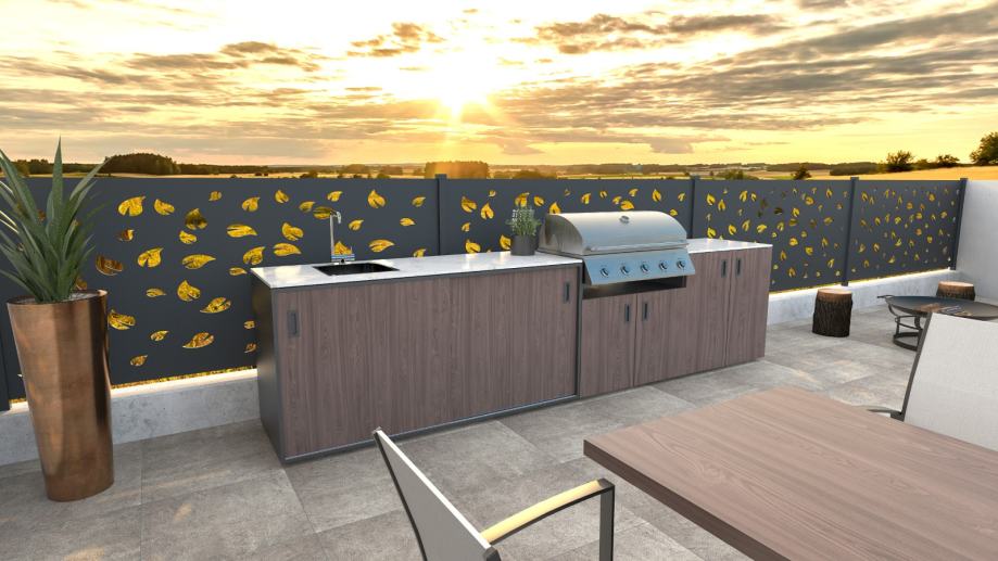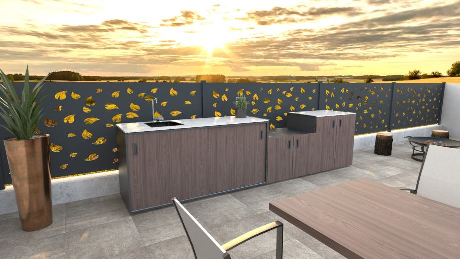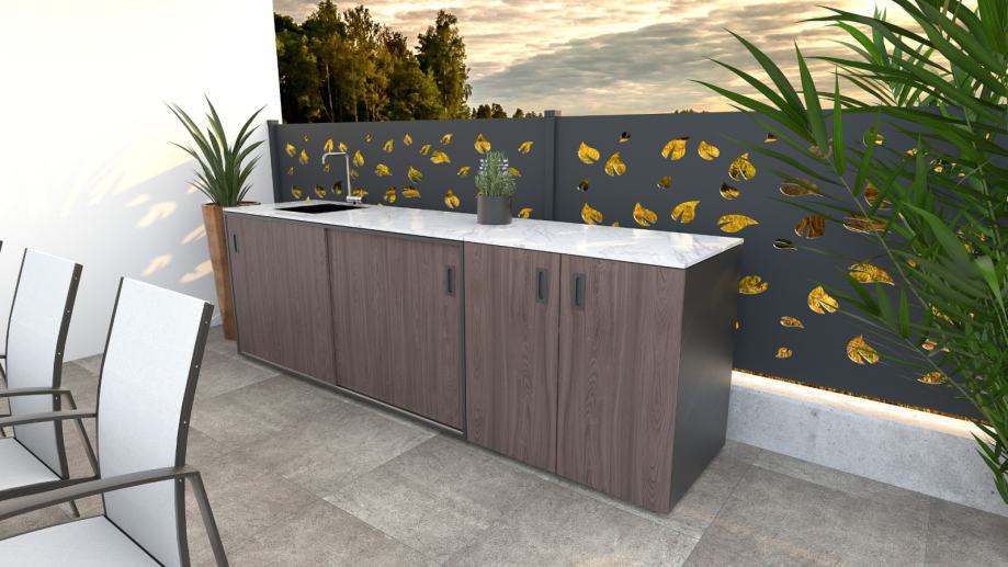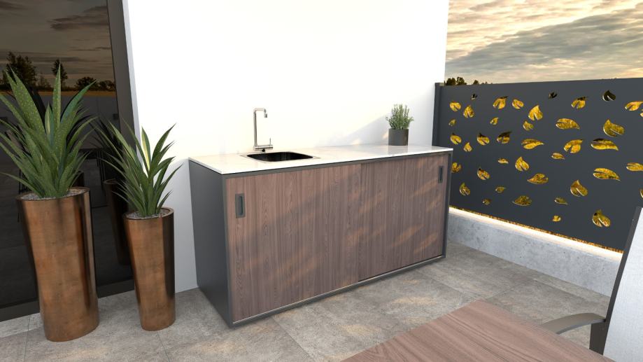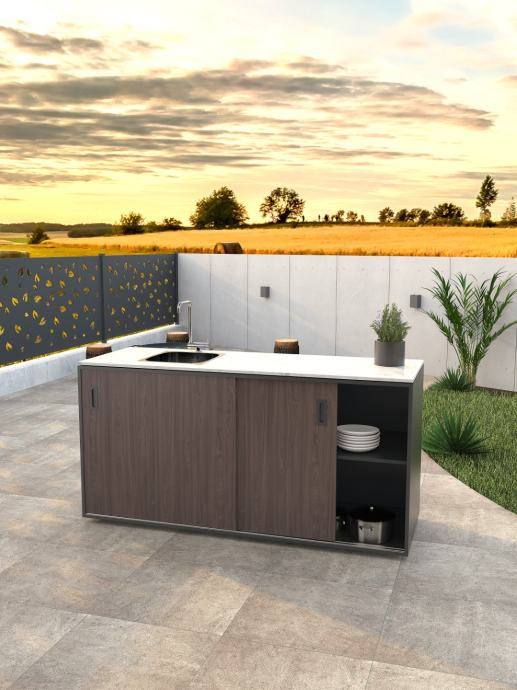 Sudoper i kuhinjska slavina izrađeni od nehrđajućeg čelika pa pogodni za vanjsku upotrebu, kuhinjska slavina ima i preklopnu funkciju;