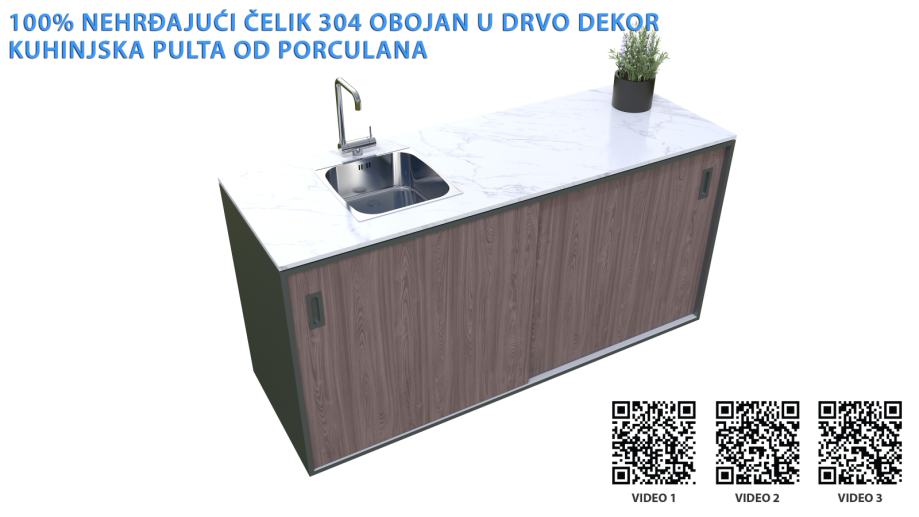 Gornji pult od porculana debljine: 15 mm, dekor talijanskog mramora i otporan na vanjske utjecaje, jednostavan za održavanje;
