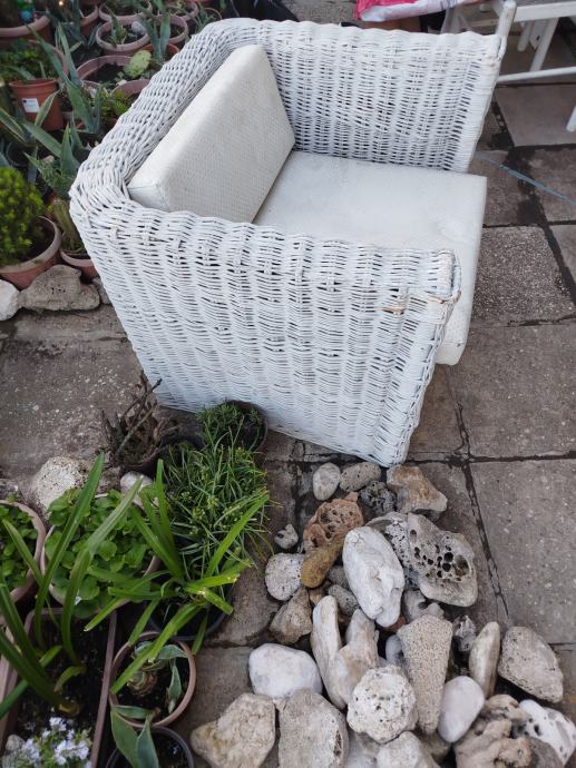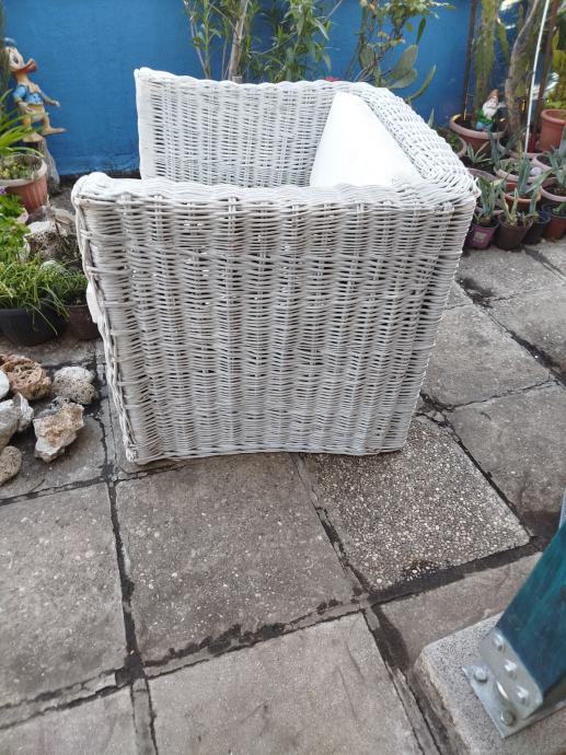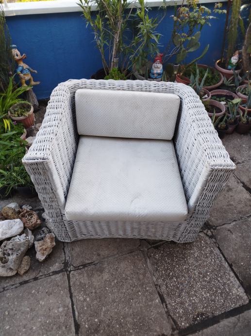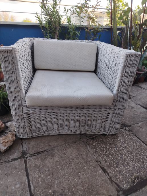 Fotelje od prirodnog pravog ratana sa jastucima(5 komada)Dimenzije:širina-80cm,dubina-70cm,visina-63 cm.Pogodno za terase,balkone,vrtove,bazene,ugostiteljstvo.Cijena je za 1fotelju0977220007