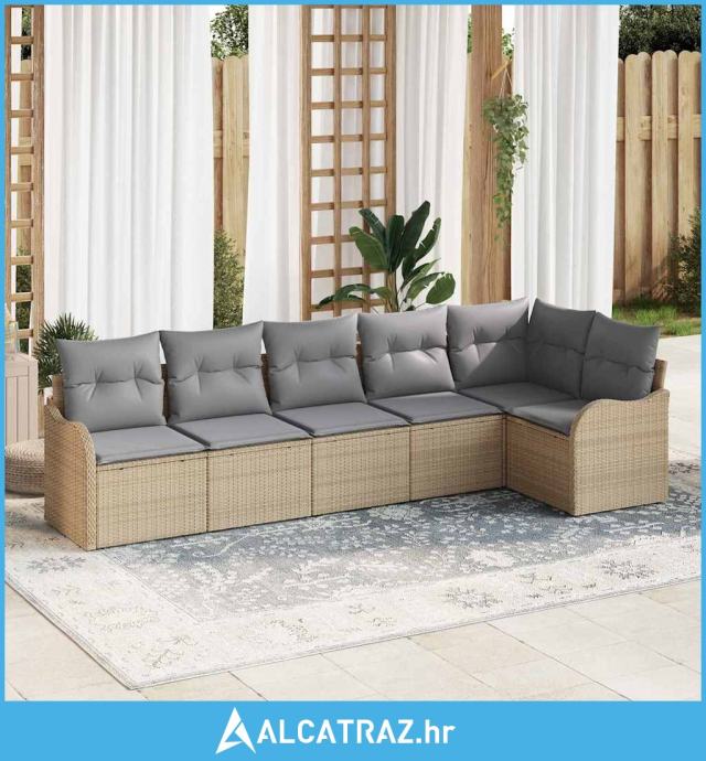 Garnitura od 6 komada za vrt s jastučićima, bež poli ratan, 2-sjedalo