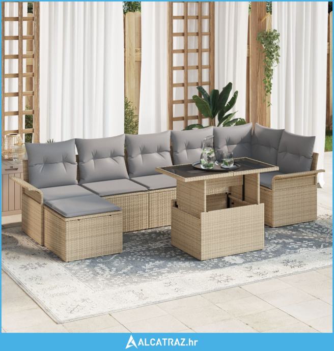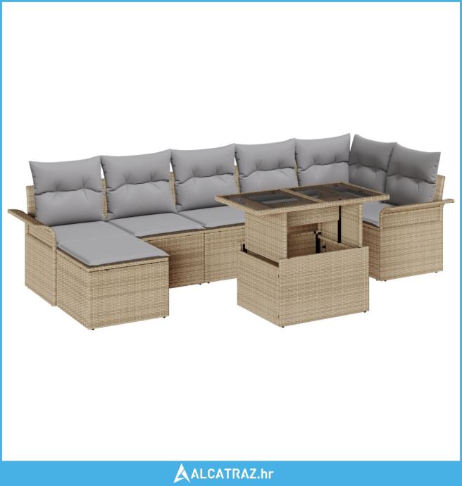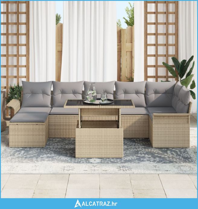 garnitura od 8 dijelova za vrt s jastučićima Bež Poli Ratan - NOVO