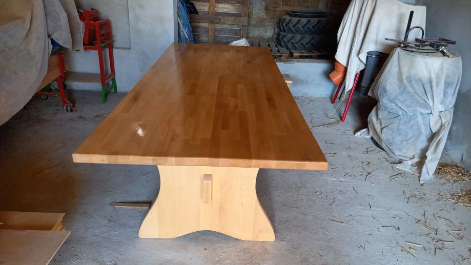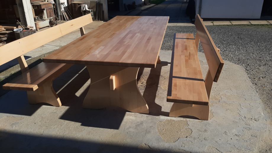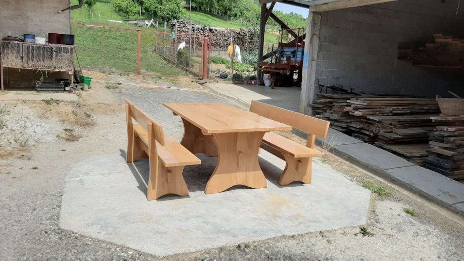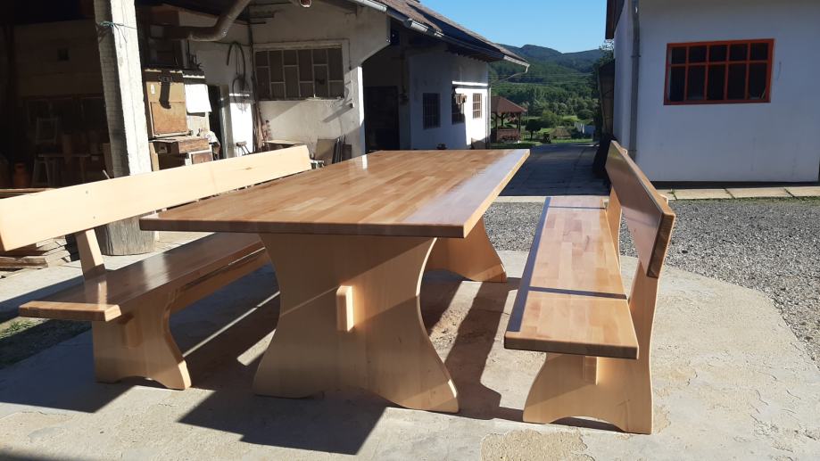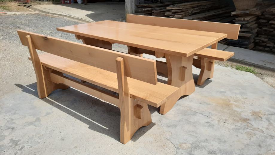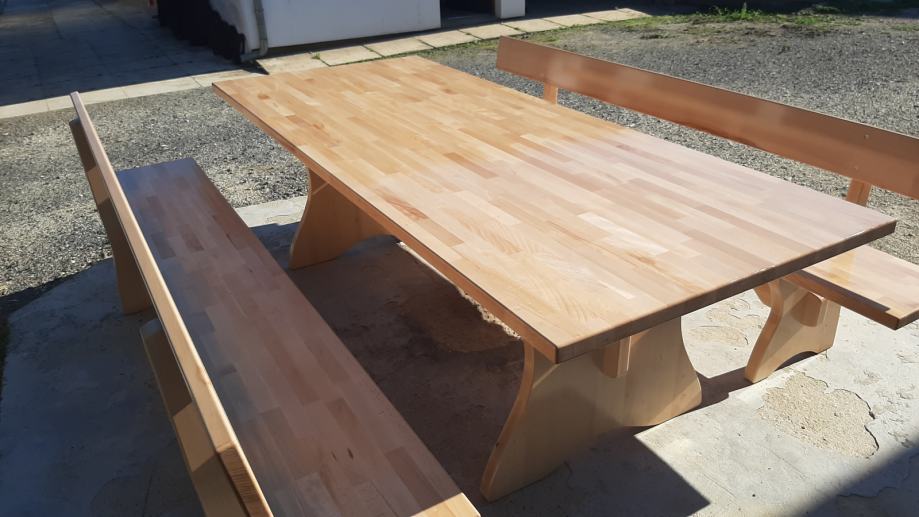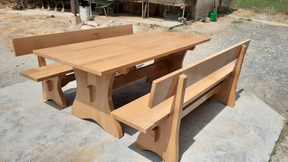 Standardna širina stola je 90 cm, a širina sjedišta klupe 35 cm. Lakirano sjajnim PU lakom za parkete (pogodnije za unutarnje prostore). Mogućnost dostave na kraće relacije uz naknadu realnih troškova.