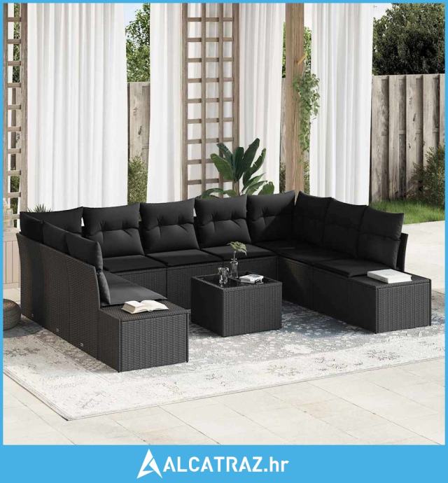 Garnitura za vrt od 10 dijelova s jastučićima bež poli ratana - NOVO