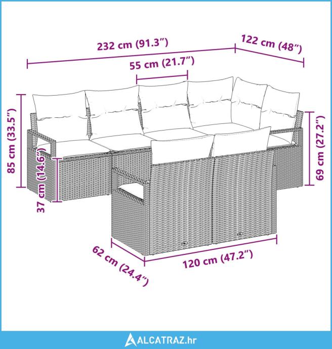 Ova garnitura za vrt je stylish dodatak tvom vanjskom prostoru, napravljena za udobno opuštanje. Njezin moderan izgled i modularna postavka omogućuju ti da ju postaviš kako želiš za svoju terasu ili balkon, stvarajući ugodno mjesto za odmor ili zabavu s prijateljima.