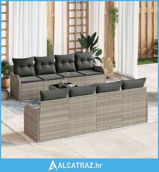 Garnitura za vrt od 9 dijelova s jastučićima svjetlosiva poli ratan -