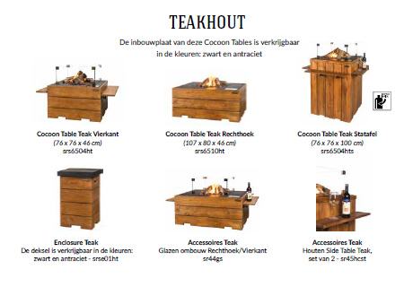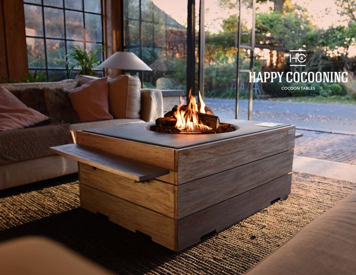 Happy Cocooning (iz Nizozemske) proizvodi premium vatrene stolove za vrt, terasu (također za barove) ili lounge. U njemu se nalazi plinski kamin s plamenikom od nehrđajućeg čelika (elektronsko paljenje), lijepo kamufliran optičkim trupcima i kamenjem lave.