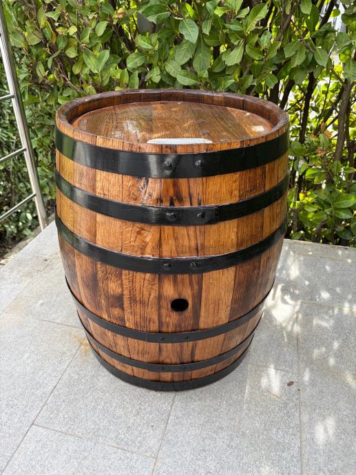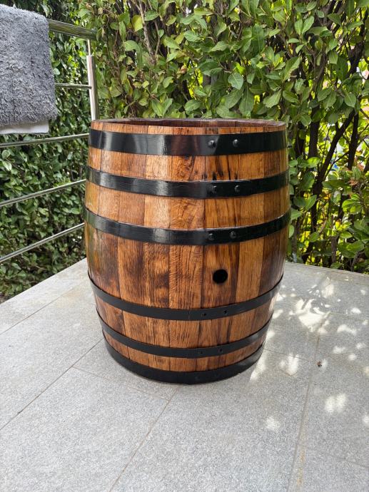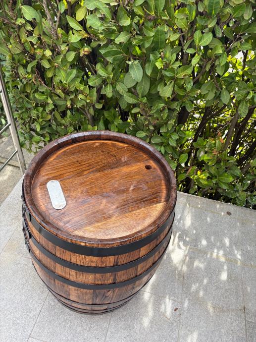 Bačva za vino, koja je nalakirana i izbrušena te se koristi kao ukras za vrt te po mogučnosti može se od nje napravit barski stol za dvorišta i terase.