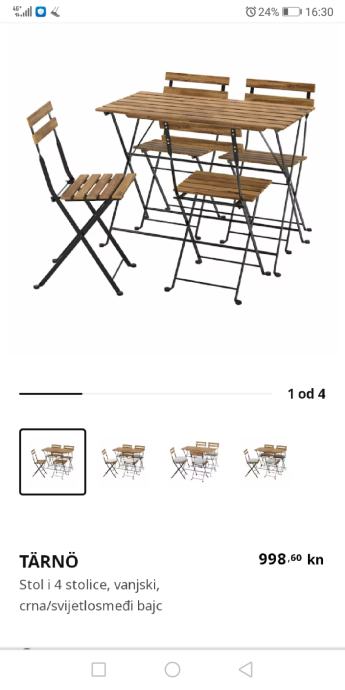 Prodajem Ikea Tarno veći sklopivi vrtni stol i stolice. Praktički novo, stoji u stanu.
