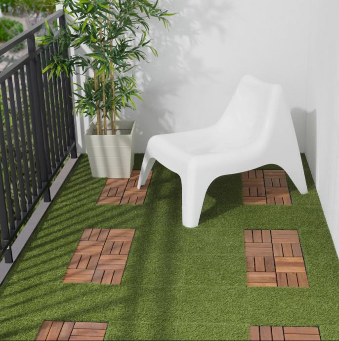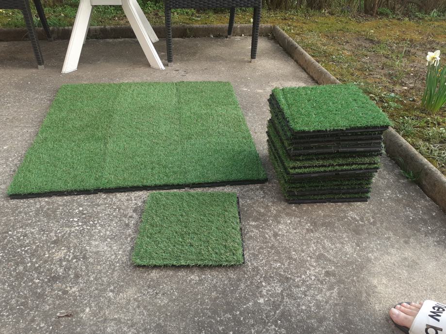 Travnate podne obloge za terasu kupljene prije dvije godine. Mogu se kombinirati kao na slici. Vrlo lagano postavljanje, rastavljanje i održavanje.
