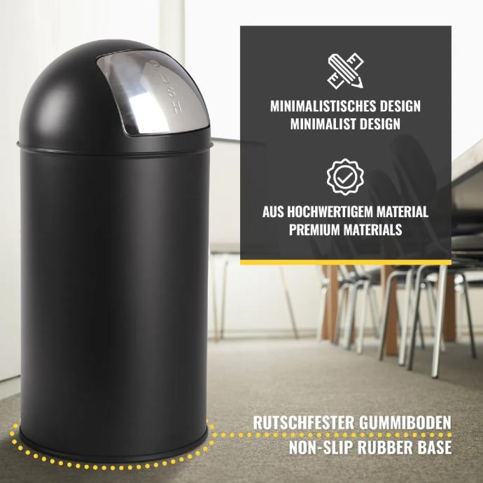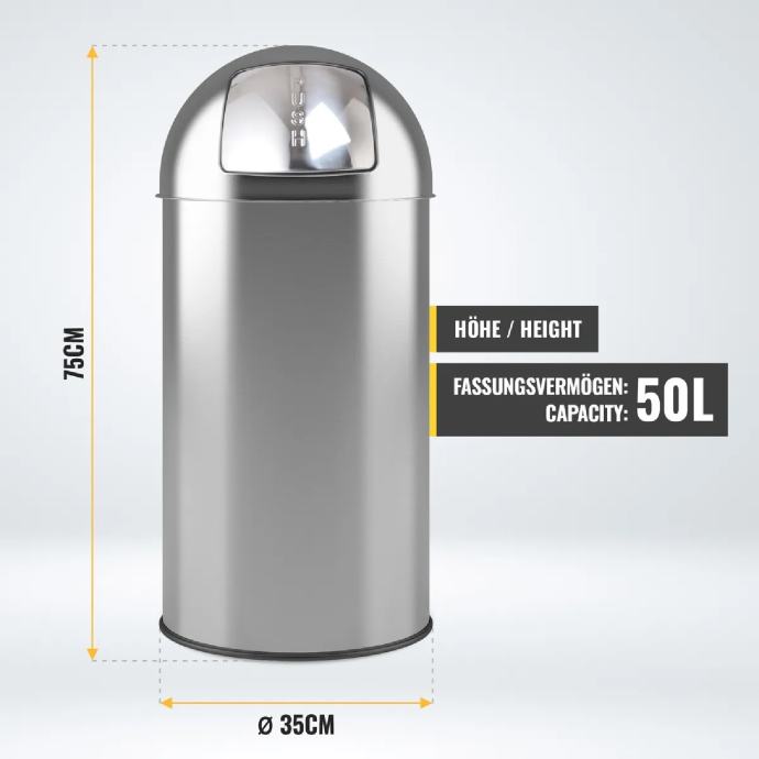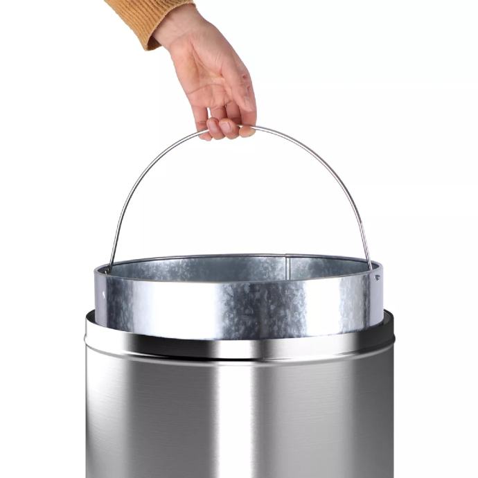 Kuhinja sve više igra središnju ulogu u životima mnogih ljudi. S ovom velikom cilindričnom kantom za smeće izrađenom od sjajnog nehrđajućeg čelika, kupujete moderan, ali i praktičan kuhinjski dodatak. Uklonite poklopac s ulaštenim preklopom i umetnite odgovarajuću vrećicu za smeće i spremni ste za korištenje.