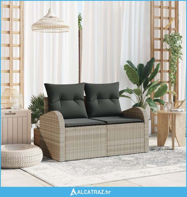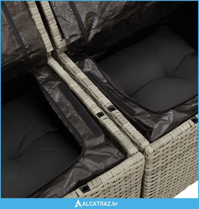 kauč za dvoje s pohranom i jastučićima Svjetlosivi poli ratan - NOVO