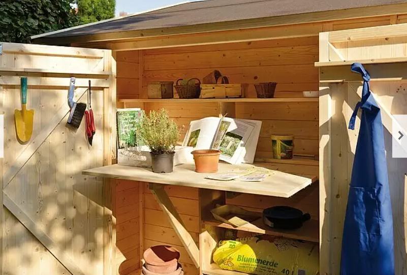 Vrtna kućica s ugradbenim ormarom i nadstrešnim dijelom