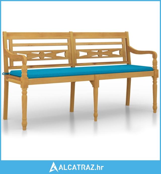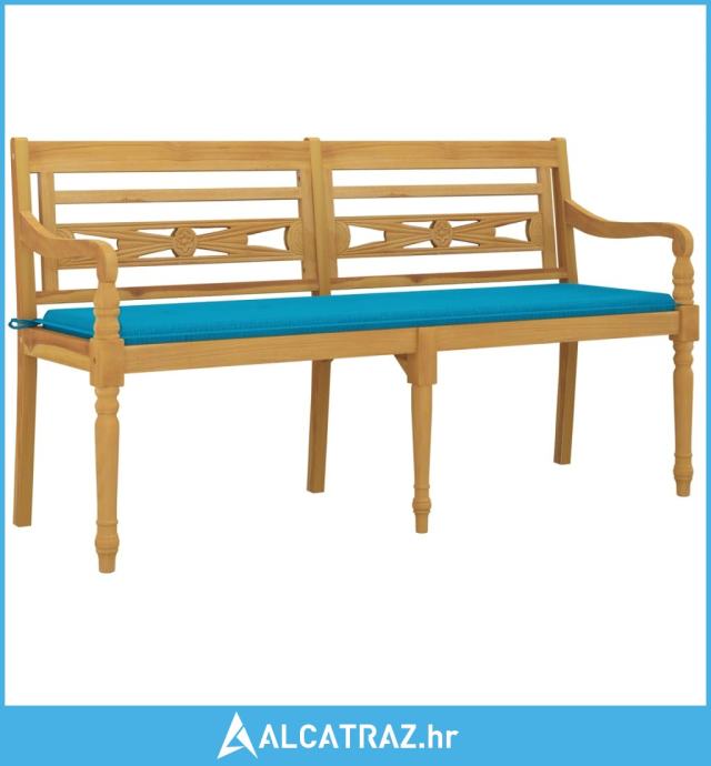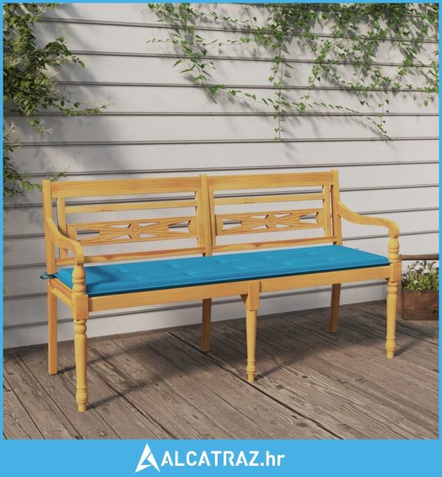 Klupa Batavia s plavim jastukom 150 cm od masivne tikovine - NOVO