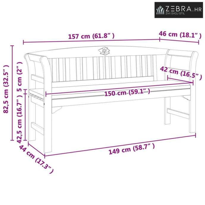 Značajke / Funkcije / Dizajn: Ova klupa donosi ravnotežu i harmoniju u svaki raspored terasa, vrtova ili balkona. S kvalitetnom izradom i bezvremenskim stilom, ona je svestrani komad koji će se uklopiti u svaki prostor, dodajući mu mrvu sofisticiranog rustikalnog šarma.