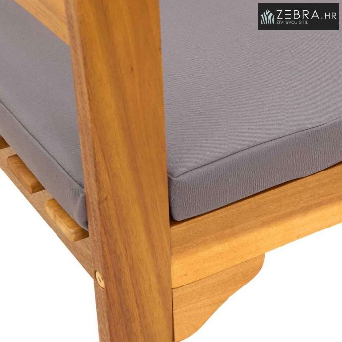 Materijali: Klupa je napravljena od masivnog bagremovog drveta, što joj daje izdržljivost i dugovječnost u vanjskim uvjetima. Uljna obrada ne samo da naglašava bogatu boju drveta, već štiti od vlage, pomažući da izgleda dobro kroz vrijeme. Ovaj materijal je odličan spoj izgleda i praktičnosti.