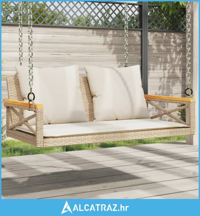 Klupa za ljuljanje s jastucima bež 109x62x40 cm od poliratana - NOVO