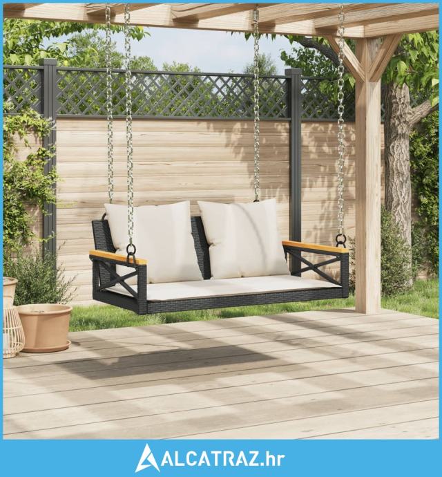 Klupa za ljuljanje s jastucima crna 109x62x40 cm od poliratana - NOVO