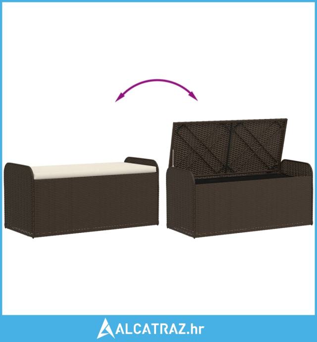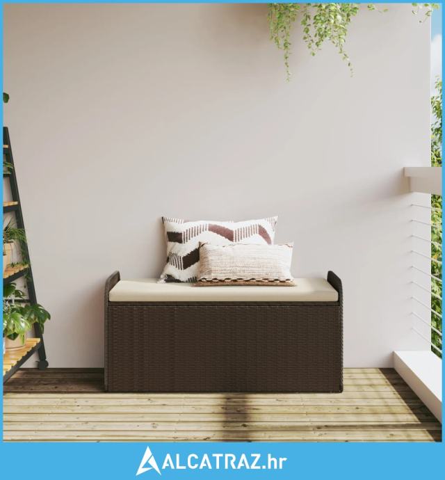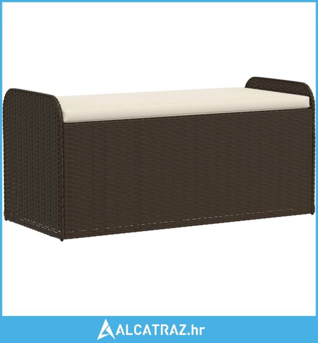 Klupa za pohranu s jastukom smeđa 115x51x52 cm od poliratana - NOVO