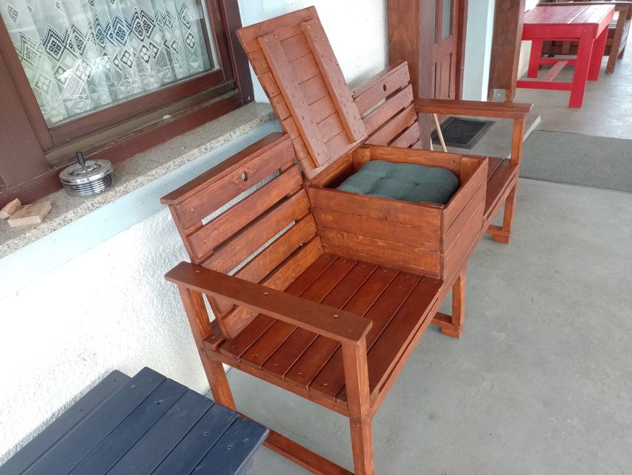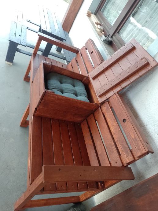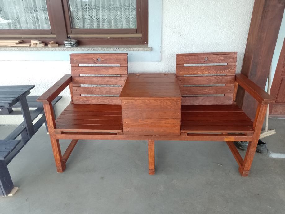 Prodaje se drvena klupa sa ugrađenim stolom,koji se otvara.Ručni rad,reciklirano drvo,jela,smreka. Dimenzije na slici. Cijena 190e.Moguća dostava na bližem području.