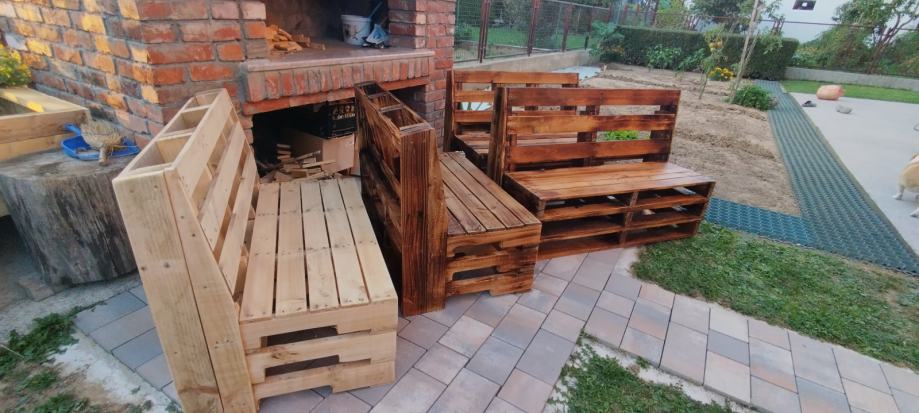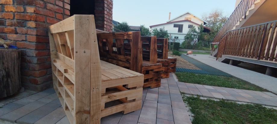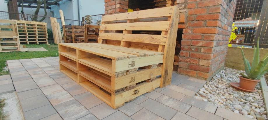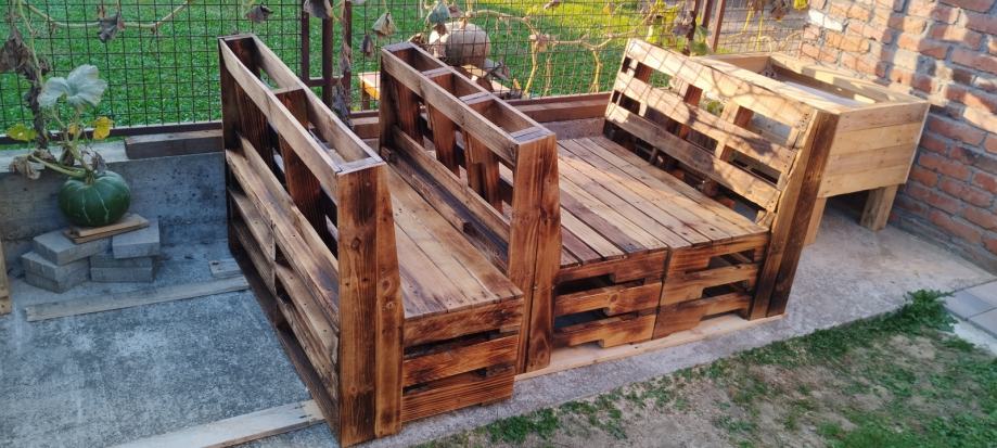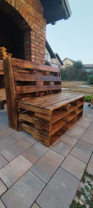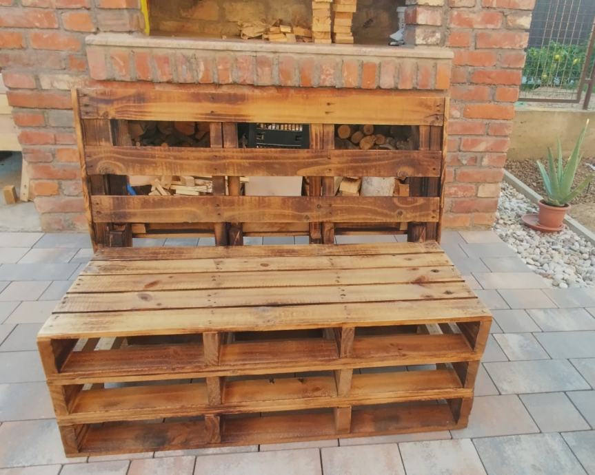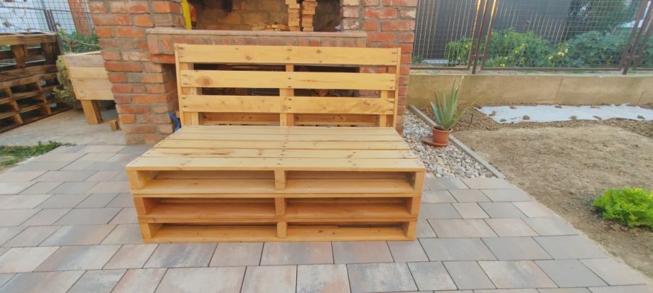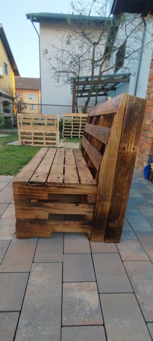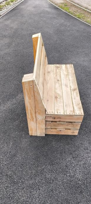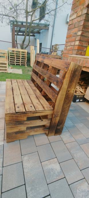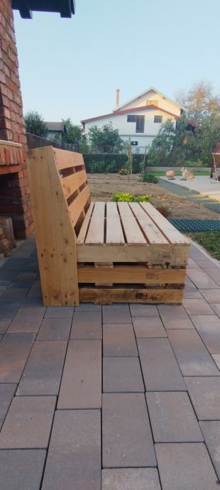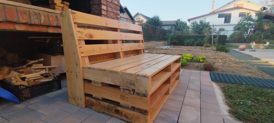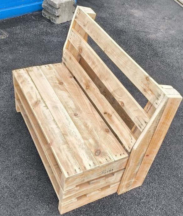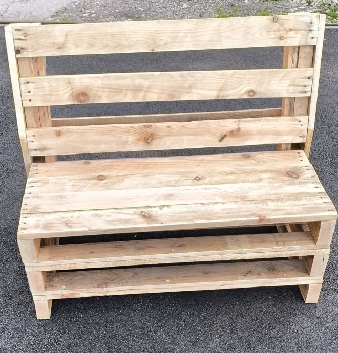 Prodajem klupu od paleta dimenzija visina 85 cm, dužina 105 cm, širina sjedišta 40 cm, prefarbano bezbojnom lazurom 3 puta, cijena 90 e.Kontakt broj 095/9068020.