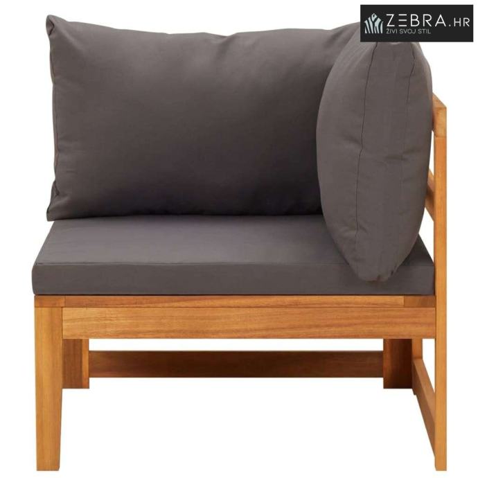 Kutna sofa s tamnosivim jastucima masivno bagremovo drvo - Tamno siva