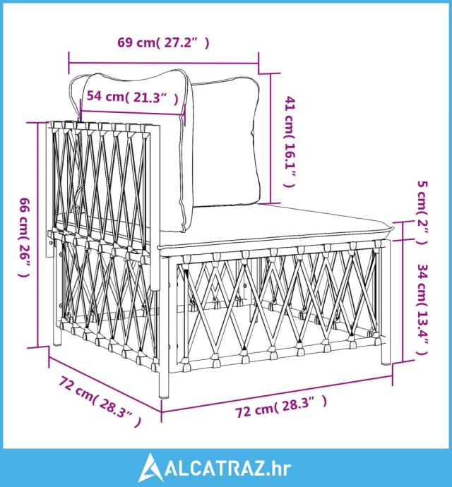 - Veličina jastuka za naslon (velikog): 69 x 41 cm (D x Š)