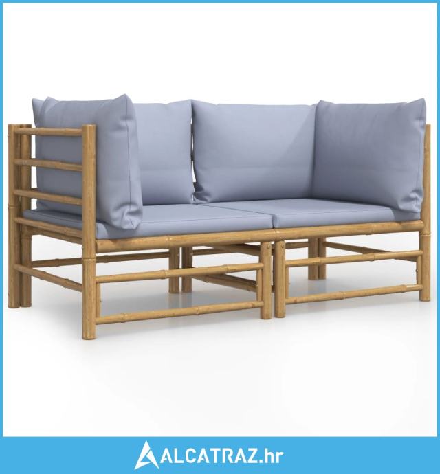 Kutne vrtne sofe s svjetlosivim jastucima 2 kom od bambusa - NOVO